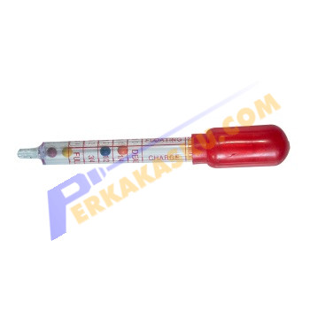 Mini battery hydrometer adalah alat yang digunakan untuk mengetahui berat jenis zat cair air aki khususnya pada sepeda motor, fungsinya memang sama seperti hydrometer biasa yang digunakan untuk mengukur berat jenis zat cair air aki mobil, hanya saja memiliki bentuk yang lebih kecil dan panjang, dan didalam tabungnya terdapat bola yang mengambang yang memiliki fungsi sebagai indikasi kondisi cairan baterai melalui pengujian kondisi penyimpanan dayanya