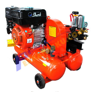 Compressor + Power Sprayer + Snowash , 3 in 1 merupakan produk invoasi terbaru dari Shark. Sangat cocok untuk usaha cuci motor / mobil, anda tidak perlu ribet lagi menyediakan 3 alat terpisah. Disediakan Panel, untuk memudahkan instalasi dan pengontrolan tekanan air, angin, dan snow. memiliki 2 tangki yang berfungsi sebagai penampung angin dan snow. Dilengkapi juga dengan kopling, untuk menggerakkan atau menghentikan putaran air compressor.