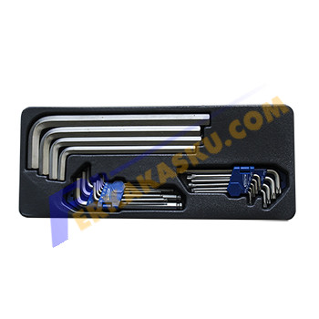 BluePoint kunci L dan Torx set memiliki ukuran lengkap dari 1.5 hingga 19mm dan Torx / Bintang T10 hingga T50. Dikemas dalam 1 tempat modular yang rapi dapat disimpan dalam laci lemari troli. Dibuat dari material chrome vanadium berkualitas dengan standard tinggi dari SnapOn sebagai perusahaan induk dari BluePoint.