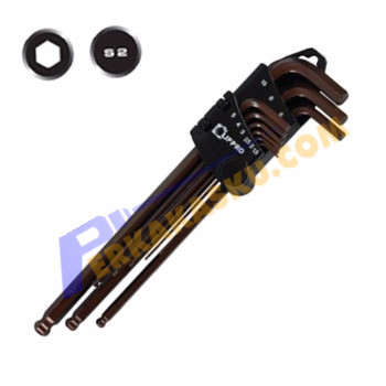 Lippro 9 Pcs S2 - 1/16 - 3/8 Inch Kunci L Set Panjang Ballpoint