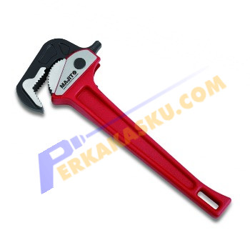 Fitur Kunci pipa dengan kepala yang diatur secara otomatis, Desain yang ergonomis, cukup 1 tangan untuk pemasangan, pengepasan, pemutaran, dan pelepasan.