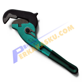 | Fitur | Kunci pipa dengan kepala yang diatur secara otomatis, Desain yang ergonomis, cukup 1 tangan untuk pemasangan, pengepasan, pemutaran, dan pelepasan. |