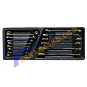BluePoint kunci ringpas rachet set memiliki ukuran lengkap dari 5.5 hingga 19mm berjumlah 15 pcs. Rachet dapat digunakan untuk pengencangan dalam 1 arah, untuk membutuhkan arah sebaliknya cukup membalikkan posisi. Dikemas dalam 1 tempat modular yang rapi dapat disimpan dalam laci lemari troli. Dibuat dari material chrome vanadium berkualitas dengan standard tinggi dari SnapOn sebagai perusahaan induk dari BluePoint.