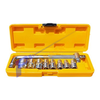 Kunci Sok Set 10 Pcs dari Sherlock ini merupakan paket kunci soket berupa gagang soket, kepala sliding T yang juga adapter 1/2F x 1/2M dan beberapa mata kunci yang umum digunakan di bengkel sepeda motor atau untuk hobby. Mata sok berukuran 8 hingga 24 mm dengan jumlah sudut 6. Terbuat dari material chrome-vanadium yang tahan karat dan tahan lama untuk penggunaan bengkel resmi sepeda motor. Tidak kami sarankan untuk digunakan pada alat / mesin impact wrench. Dikemas dalam box plastik yang ringan tetapi cukup kuat dan tertata rapi, memudahkan anda untuk menyimpan dan mengambil peralatan kunci.