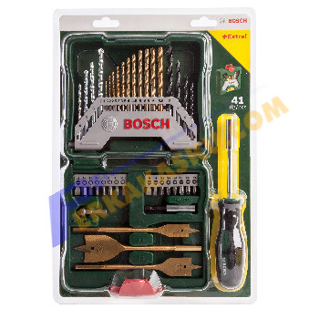 Bosch Mata Bor & Obeng Kombinasi Set X-Line Titanium 41 Pcs merupakan paket alat pertukangan berisi variasi mata obeng, dan bor dari Bosch. Dalam paket yang dikemas dalam kotak plastik yang ringkas, dan memiliki sisi yang transparan, terdapat mata bor untuk besi, kayu, tembok, mata obeng dengan bentuk plus, min, torx, pozidriv, dan juga universal holder sebagai dudukan pemegang mata obeng, serta mata bor countersink dan obeng sebagai pelengkap yang lebih komplet. Cocok untuk digunakan untuk berbagai keperluan rumah, hobby, maupun pertukangan ringan.