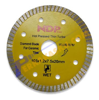 NDP 4x1.2mm merupakan mata potong keramik yang sangat tipis dan tajam untuk pemotongan keramik, batu alam, hingga batu perhiasan seperti batu akik. Mampu digunakan pada mesin dengan putaran 15000 rpm menjadikannya dapat menghasilkan kualitas potongan yang rapi dan tidak banyak menghabiskan material yang dipotong.