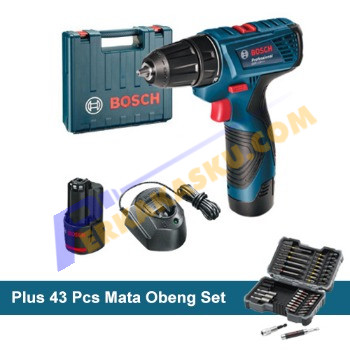 Bosch GSR 120-Li - 2 Baterai Mesin Bor Obeng Baterai + 43 Pcs Mata Obeng Set