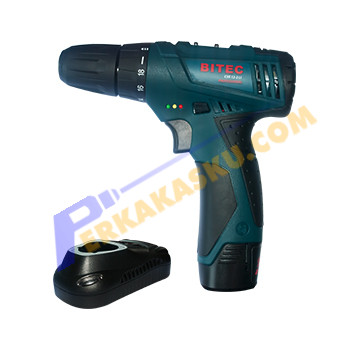 Bitec CSR12-2-Li Drill Driver yang menggunakan baterai lithium-ion 12 V-Li. Tipe ini mampu memberikan putaran tanpa beban hingga 1300 rpm dengan torsi yang diatur dalam 18 pilihan. Dilengkapi dengan baterai, charger, dan dikemas dalam koper plastik.