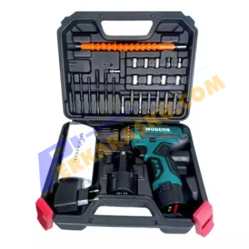Mesin Bor Tembok Obeng Baterai 12V + 24 Aksesoris Modern 10mm M-15 IMPACT merupakan alat yang dirancang untuk kebutuhan Anda. Menggunakan baterai berdaya 12V dengan jenis Lithium-Ion. Alat ini mampu berputar dengan kecepatan tanpa beban 0 - 1350 rpm (High) 0-350 rpm (Low). Sangat efisien untuk melubangi besi diameter 10 mm. Fasilitas lain yang tersedia diantaranya 18 Pilihan Torsi, LED, Reversible, Variable Speed, 24pcs extra assesories. Paket penjualan sudah termasuk 2x Baterai, 1x Charger Baterai, 1x Plastik Case, Mata Obeng Set 6pcs, Mata Sok Set 9pcs, 3x Mata Bor Besi, 3x Mata Bor Kayu, 1x Fleksibel Holder, 2x Holder.. Garansi resmi Modern selama 1 Bulan.