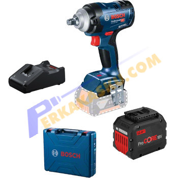 Bosch GDS18V-400 - Paket 1 Baterai 12.0Ah Charger Mesin Impact Wrench 1/2"