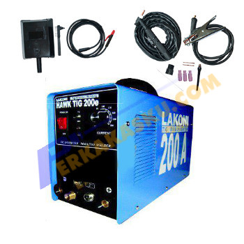 Trafo Las TIG/MMA Inveter Lakoni Hawk 200E, merupakan mesin las yang dapat digunakn untuk mengelas stainless steel dengan menggunakan Tungsten Inert Gas arus DC. Menggunakan Gas Argon untuk melindungi dari kontaminasi zat yang bisa mengganggu pengelasan. Selain itu mesin ini juga tetap dapat berfungsi untuk mengelas besi atau baja dengan metode MMA hingga 200 Ampere non-stop.