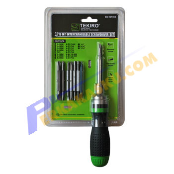 Tekiro Obeng Interchangeable Set 19 in 1, ini merupakan obeng dengan material obeng dan handle kualitas tinggi. Bagian sisi atas obeng terdapat ruang penyimpanan mata obeng, sangat ringkas dan nyaman. Dilengkapi dengan hingga 19 jenis mata obeng yang lengkap dan umum digunakan pada pekerjaan bengkel, hobby, dan industri.