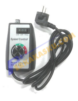Alat yang sangat praktis untuk menjadikan mesin dengan single speed menjadi variable speed. Terutama sering dipakai untuk mesin gerinda tangan agar kecepatan bisa diatur. Cukup dengan menancapkan alat ini ke listrik, dan menancapkan listrik mesin ke alat ini.
