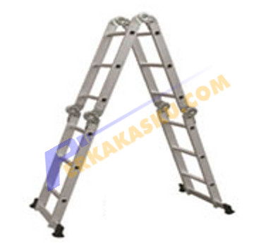 Tangga Aluminium yang bisa dilipat sehingga mudah disimpan, selain itu dapat dibuat model scaffolding.