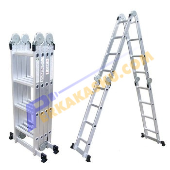 Tangga Aluminium yang bisa dilipat sehingga mudah disimpan, selain itu dapat dibuat model scaffolding.