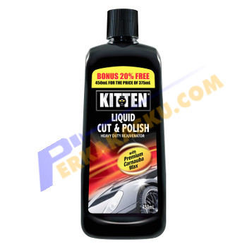Kitten Liquid Cut & Polish merupakan formula dengan terobosan terbaru yang mengandung micro abrasif halus yang sudah diformulasikan khusus untuk mencrahkan permukaan yang sudah kusam tanpa menggores. Cat yang sudah kusam akibat cuaca dapat dicerahkan kembali, permukaan oksidasi dan warna cat akan dibarukan. Tidak seperti poles tradisional, Kitten Liquid Cut & Polish tidak mengandung cairan yang mudah terbakar, dengan formulasi berbasiskan air dan aman dan mudah untuk digunakan. Tidak memerlukan tekanan usap yang keras. mengandung carnauba wax dan silicones untuk proteksi cat dan hasil yang lebih bersinar dan tahan lama. Cocok untuk finishing clear dan jangan digunakan pada cat metalik tanpa coating clear.